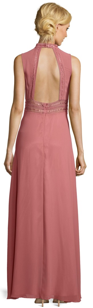 Bei diesem eleganten Ballkleid wurde das Bustier mit Stehkragen und Neckholder in feine Falten gelegt. Feine Spitzen sowie die leicht transparente Optiken auch in der Taille und am Rücken machen dieses lange Modell in cozy pink oder alt rose zum echten Traumkleid