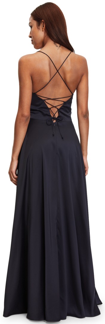 Das figurumspielende maxi lange Ballkleid ohne Arm wurde mit Wasserfallausschnitt in night sky designt. Aus leicht fließendem Satin mit dezentem Glanz ist das Modell mit Schnürung und R-V im Rücken einfach perfekt für Ihren besonderen Anlass