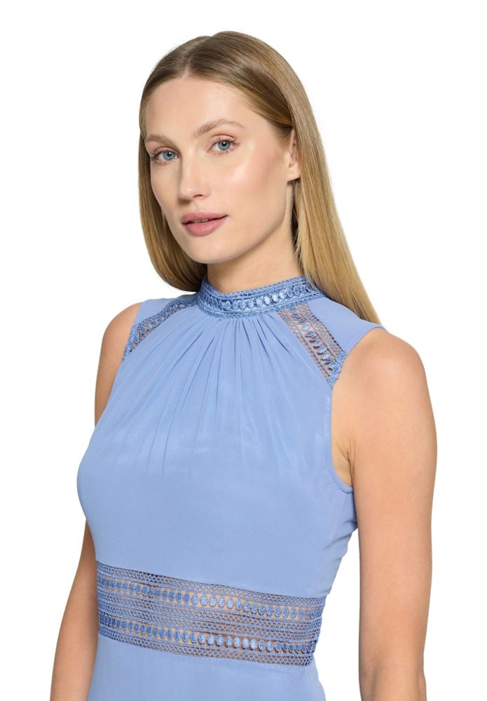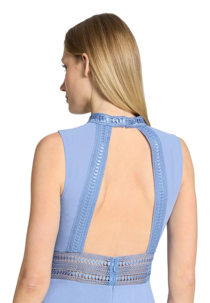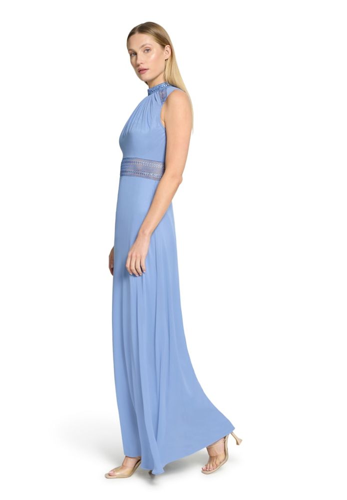 Langes VM Ballkleid Bei diesem eleganten Ballkleid wurde das Bustier mit Stehkragen und Neckholder in feine Falten gelegt. Edle Spitze sowie die leicht transparente romantische Optik auch in der Taille und am Rücken machen dieses lange Modell in night sky zum echten Traumkleid UVP=199,90/UNSER PREIS=189,00Farbe: Night SkyRunder Stehkragen mit NeckholderBustier mit romantischer RaffungQualtität: ChiffonBustier mit gepolsterten Cups Rückenteil offen mit R-VPassform: SchwingendGesamtlänge: MaxiUnterfüttert100 % Polyester Handwäsche empfohlen mit FeinwaschmittelModell Nr.: 0104/4825/8541