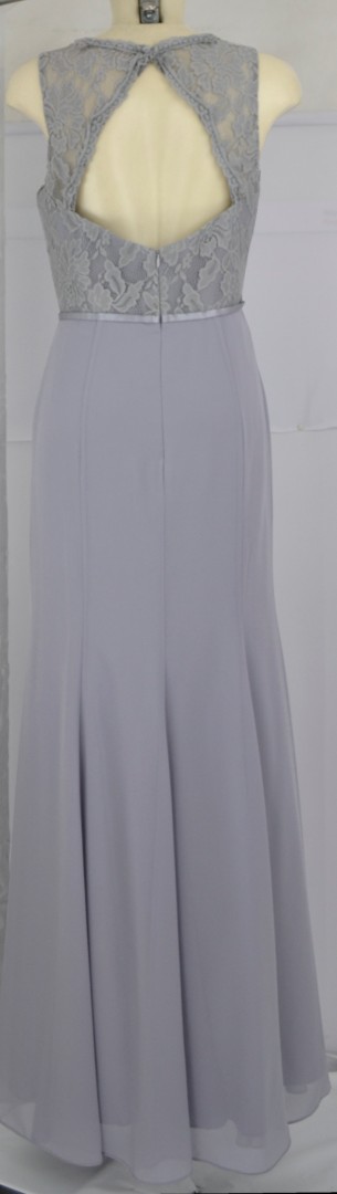 In stell blue wurde das lange Ballkleid designt bei dem das Bustier unter dem runden Ausschnitt leicht transparent sowie mit feiner Spitze versehen wurde. Auch der leicht fließende Rockteil verleiht diesem Kleid einen besonderen Charme