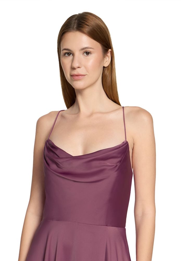 Langes VM Ballkleid Das figurumspielende maxi lange Ballkleid ohne Arm sowie langem Schlitz vorne wurde mit Wasserfallausschnitt in azalea purple designt. Aus leicht fließendem Satin mit dezentem Glanz ist das Modell mit Schnürung und R-V im Rücken einfach perfekt für Ihren besonderen Anlass UVP=249,90 / UNSER PREIS=239,90Farbe: Azalea PurpleWasserfallausschnittQualität: SatinRückenteil mit Schnürung und R-VTrägerart: SpaghettiPassform: FigurumspielendGesamtlänge: Ca. 154 cm (Maxi)Länge ab Taille: Ca. 112 cm100 % PolyesterFutter: 100 % PolyesterHandwäsche empfohlenModell Nr.: 0256/4067/4281