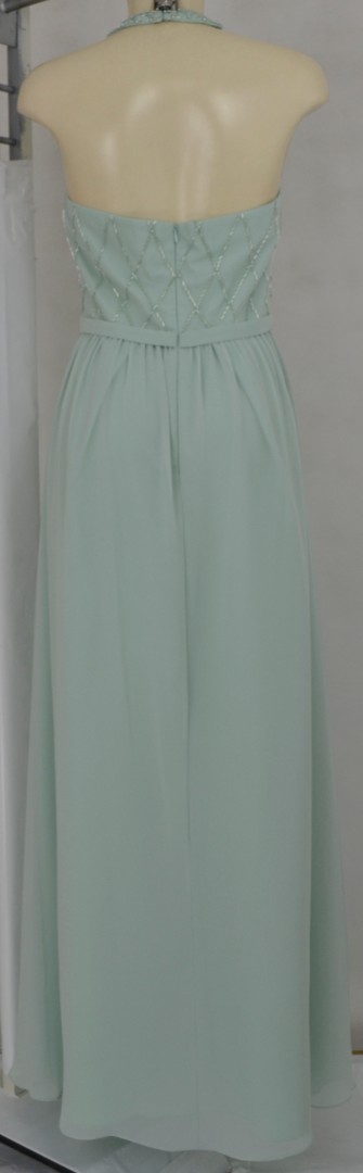 Dieses romantische Ballkleid in chalk green gehört zu den Highlights der neuen Saison. Das gepolsterte Bustier mit Neckholder wurde hierbei mit mit feinen Pailletten versehen. Auch die romantische Rücken Optik und der leicht ausgestellte Rockteil machen dieses Modell einfach perfekt für den besonderen Auftritt