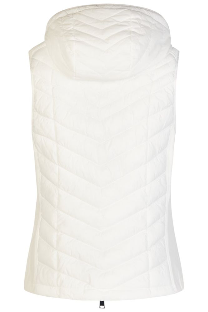Diese sportive Steppweste wurde in uni offwhite designt. Hochgeschlossen sowie mit seitlichen Taschen zum knöpfen und Innentasche lässt sich die Weste mit Kapuze immer leicht kombinieren