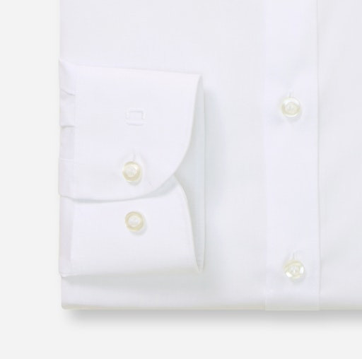 Dieses taillierte Businesshemd mit New York Kent Kragen wurde als Level Five body fit modisch schmal geschnitten designt. Aus Comfort Stretch mit 97 % Baumwolle und 3 % Elastan erfüllt dieses figurbetonte weiße Hemd zudem höchste Ansprüche