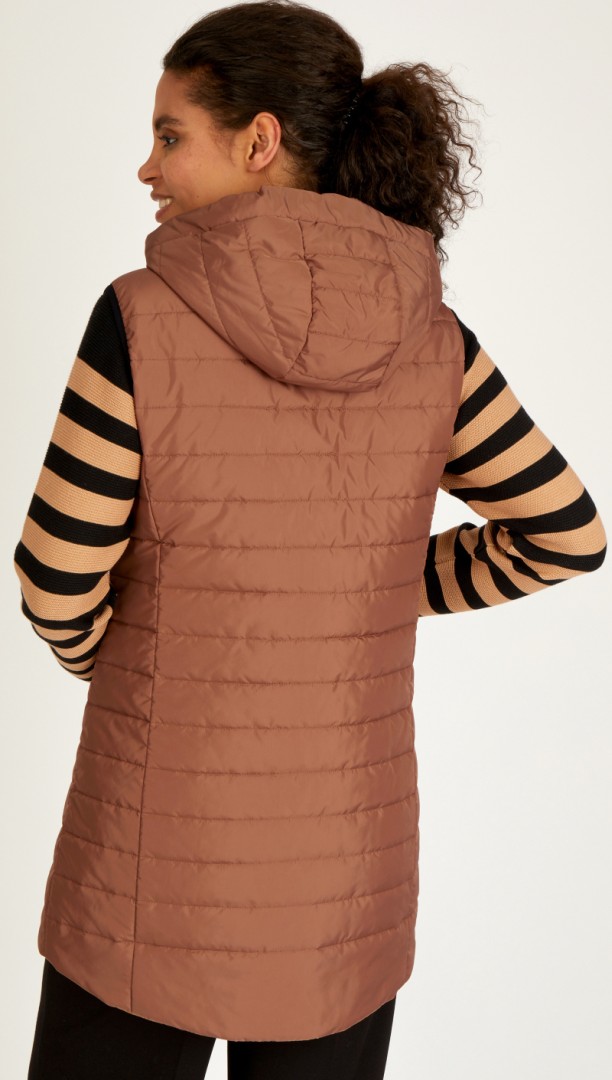 Diese sportive Outdoor Steppweste wurde in uni Calvados (Camel) designt und ist ein echter Hingucker mit Kapuze