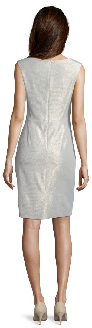 Dieses mittellange Etuikleid in minty breeze mit feiner Struktur ist ein echter Hingucker unter den neuen Kleidern. Mit edlem Glanz sowie in leicht geraffter mittlerer Länge und mit V-Ausschnitt designt machen Sie mit diesem Modell immer eine sehr gute Figur