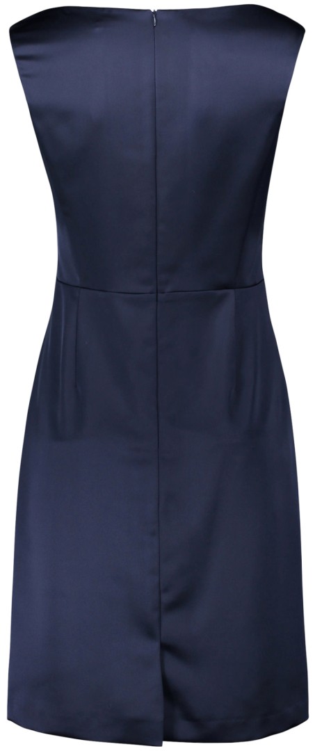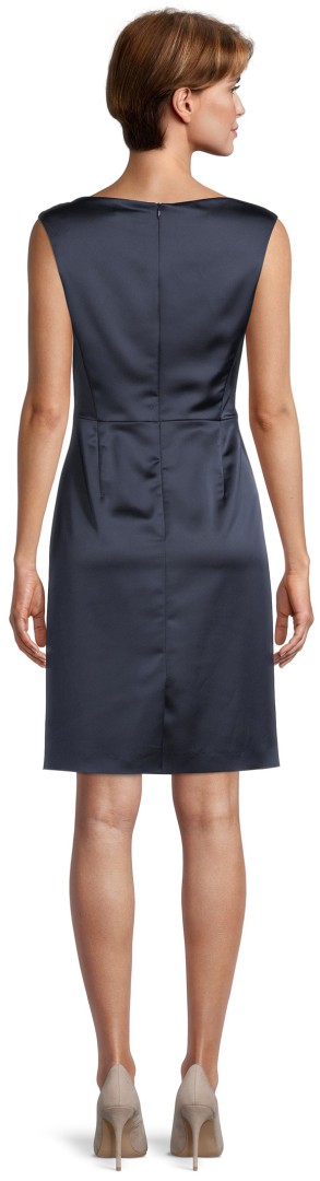Dieses mittellange Etuikleid wurde in night sky designt und kann nicht nur zu den besonderen Anlässen getragen werden. In edler stretch-satin Qualtität macht dieses Modell mit V-Ausschnitt auch durch die modischen Raffungen in Höhe der Taille immer eine gute Figur