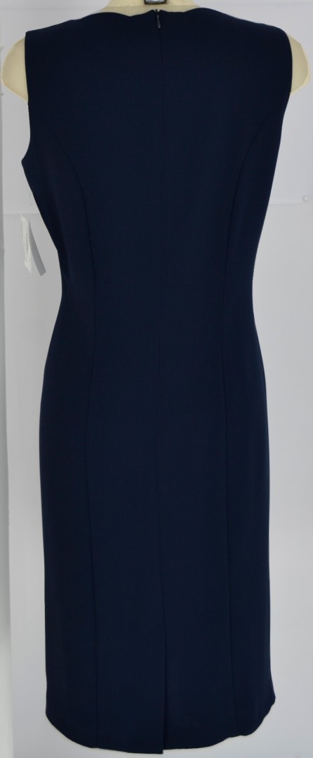 Dieses elegante mittellange Kleid ohne Arm wurde in uni marine-blau designt und kann auch zu den besonderen Anlässen getragen werden. Der romantisch gezacke Ausschnitt vermittelt  bei diesem Modell einen zusätzlichen Charme