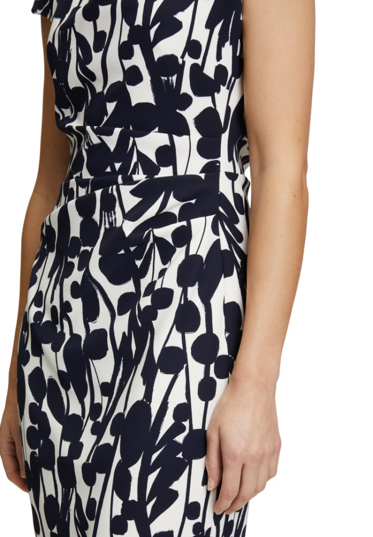 Dieses knieumspielende Kleid mit romantischem Ausschnitt wurde in cream-dark blue mit floralem Druck designt und kann auch zu den besonderen Anlässen getragen werden. Die modische Raffung macht das Kleid zum echten Allrounder