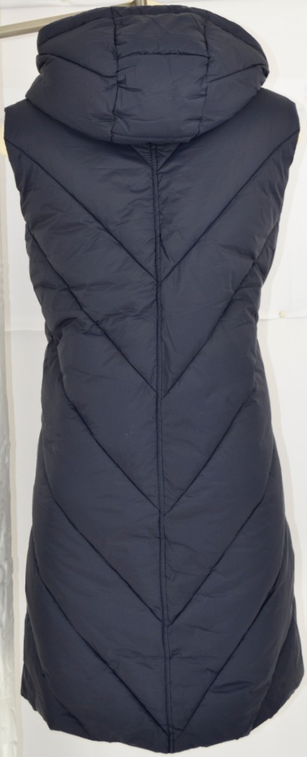 Diese warme und modische Long Stepp Weste wurde mit Kapuze in marine blau designt und gehört zu den Highlight der Saison