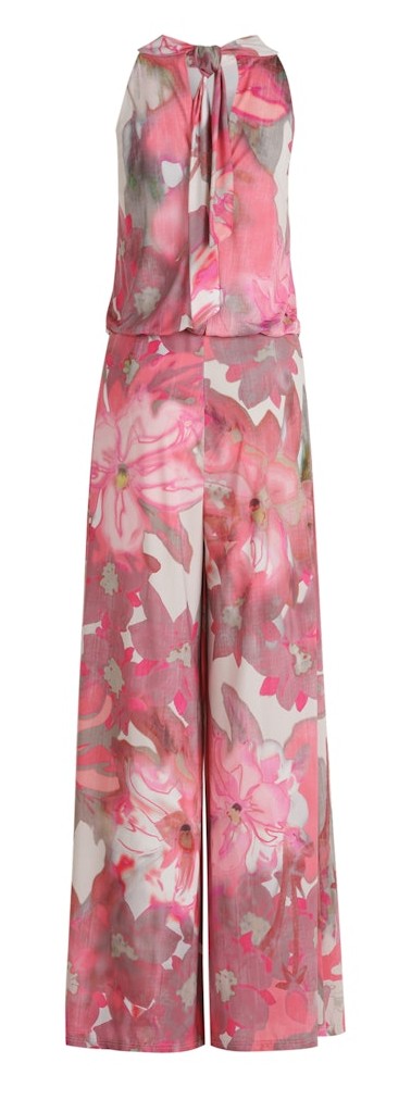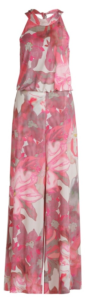 Dieser figur umspielende sowie maxi lange Overall ohne Arm wurde in mehrfarbig mit pink designt und gehört zu den must have der neuen Saison. Mit Neckholder - amerikanischem Ausschnitt und seitlichen Nahttaschen lässt sich der Overall nicht nur zu den besonderen Anlässen tragen