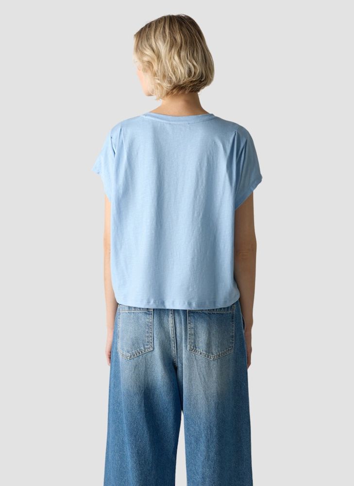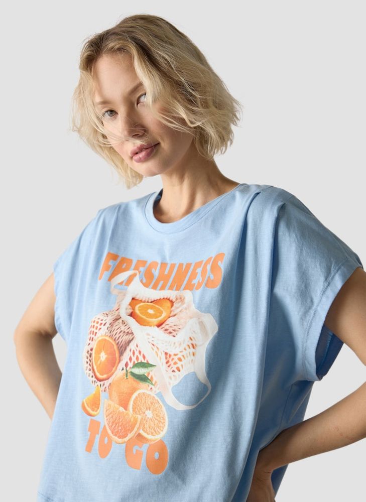 Ein Shirt zum verlieben - In Puderblau mit sportivem Früchteprint - Leicht oversize mit 1/2 Arm sowie aus 100 % Baumwolle lässt sich dieses Shirt leicht kombinieren
