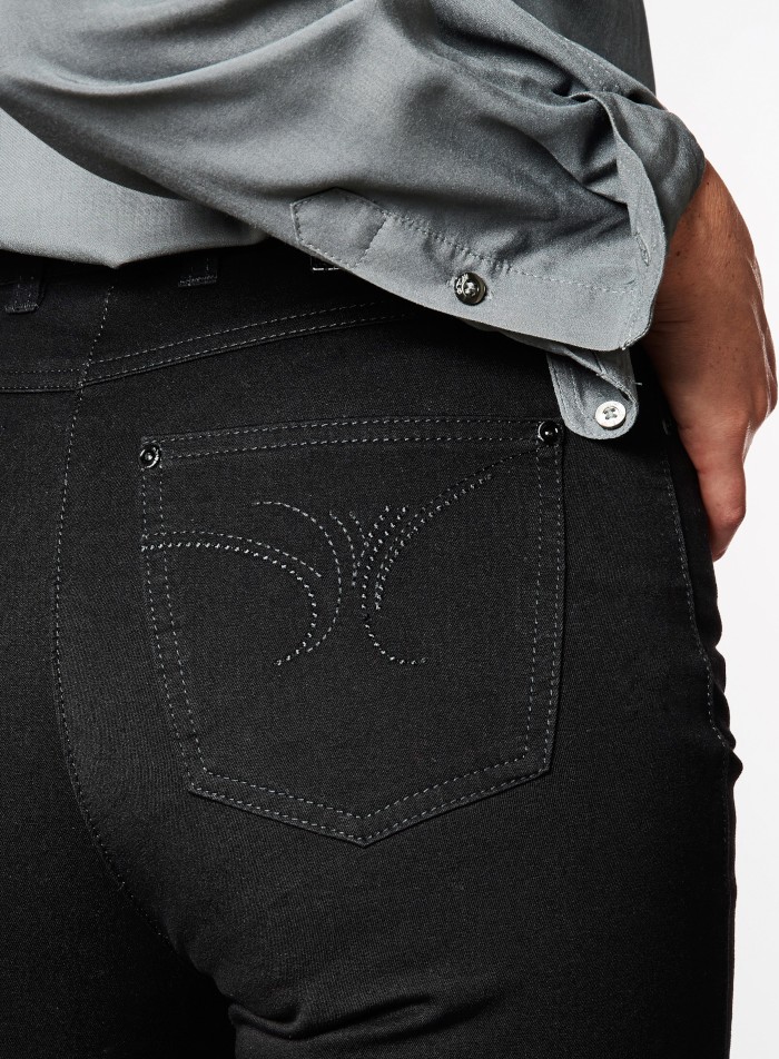 Diese hochwertige schwarze Jeans überzeugt duch eine sehr hohe Farbbeständigkeit und verblasst auch nach mehrmaligem waschen nicht. Die Belmonte Silhouette setzt ihre weibliche Form durch eine höhere Leibhöhe mit komfortabler Taille und schmaleren Oberschenkeln perfect in Szene