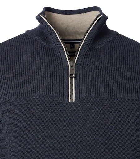 Der sportive Pullover wurde als Troyer designt. In aqua fein gerippt bis untern den R-V lässt sich dieser Pulli aus reiner Baumwolle das ganze Jahr hinduch prima kombinieren