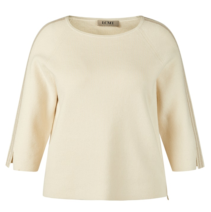 Dieser edle Pullover in uni elfenbein gehört zu den Must-have der neuen Saison. Mit rundem Ausschnitt sowie 3/4 Arm und seitlicher Ziernaht lässt sich der Pullover mit sehr feiner Rippe immer sehr leicht kombinieren