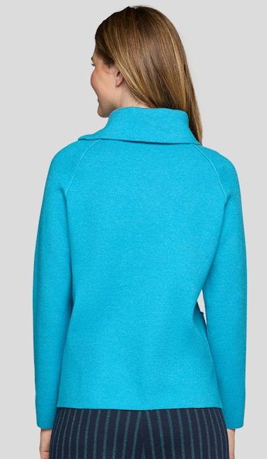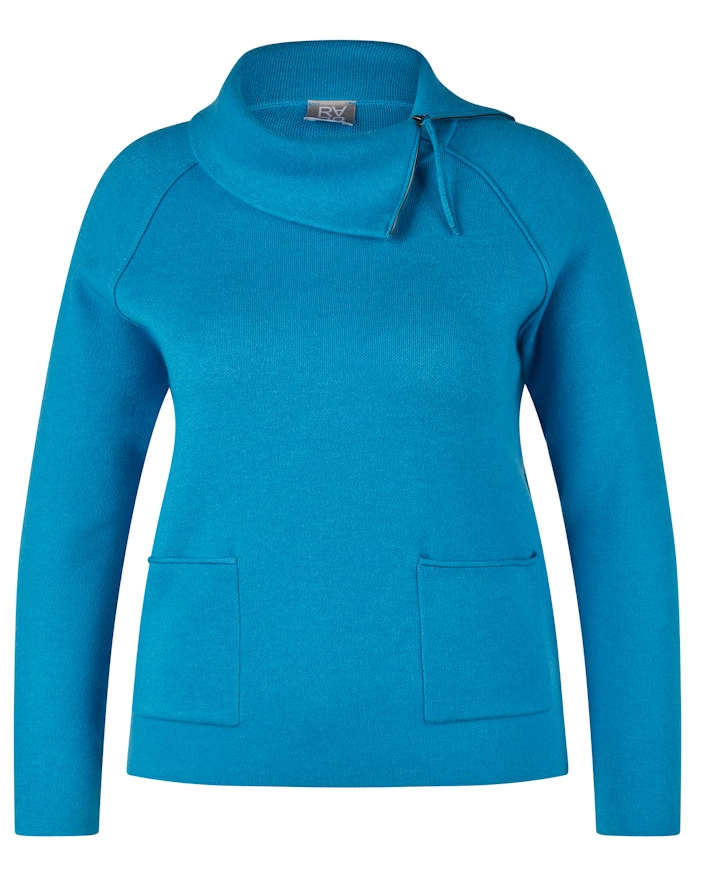 Bei diesem Pulli wurde der Rollkragen bequem mit R-V und Bändchen designt. In uni Türkis lässt sich dieser Pullover immer sehr leicht kombinieren