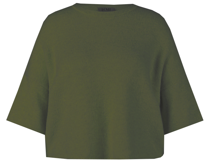 Der top aktuelle Pullover mit rundem Ausschnitt wurde in uni olive sowie in verkürzter Länge designt. Die breiten Bündchen machen diesen Pulli mit 3/4 Arm zum echten Highlight