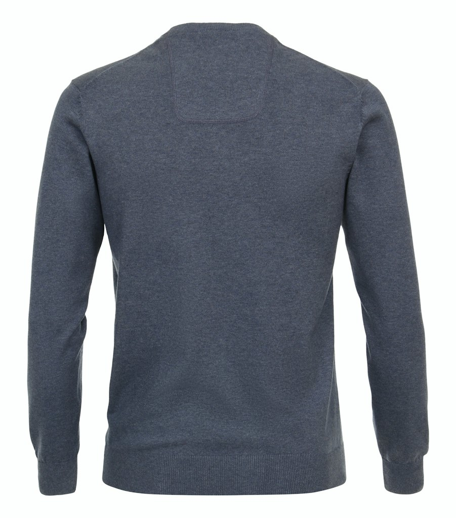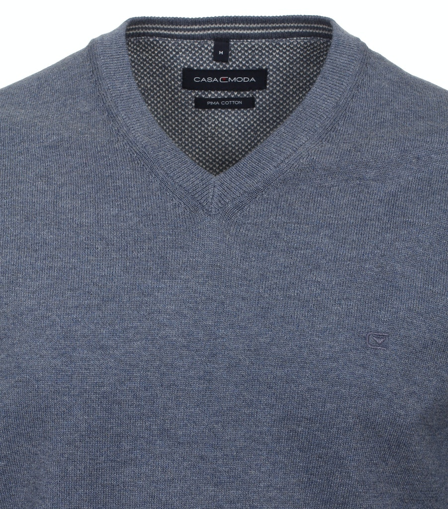 Der Pullover aus PIMA COTTON Baumwolle in mittel blau meliert wurde in normaler Passform mit V-Ausschnitt designt und kann das ganze Jahr hindurch problemlos kombiniert werden