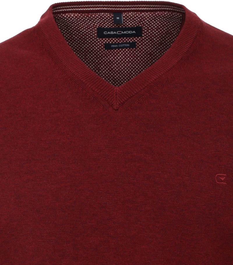 Der Pullover aus PRIMA COTTON Baumwolle in rost-rot wurde in normaler Passform mit V-Ausschnitt designt und kann das ganze Jahr hindurch problemlos kombiniert werden