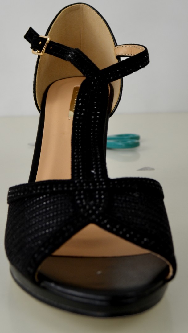 Dieser elegant offene Pump in Farbe schwarz wurde mit leichten Glitzer Effekt designt. Mit dem angepassten nicht ganz hohem Absatz ist dieser Schuh wie geschaffen für einen sicheren und perfekten Auftrift auch bei ganz besonderen Anlässen