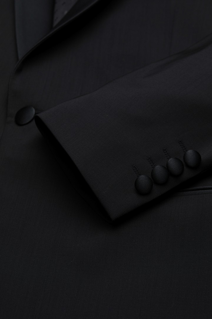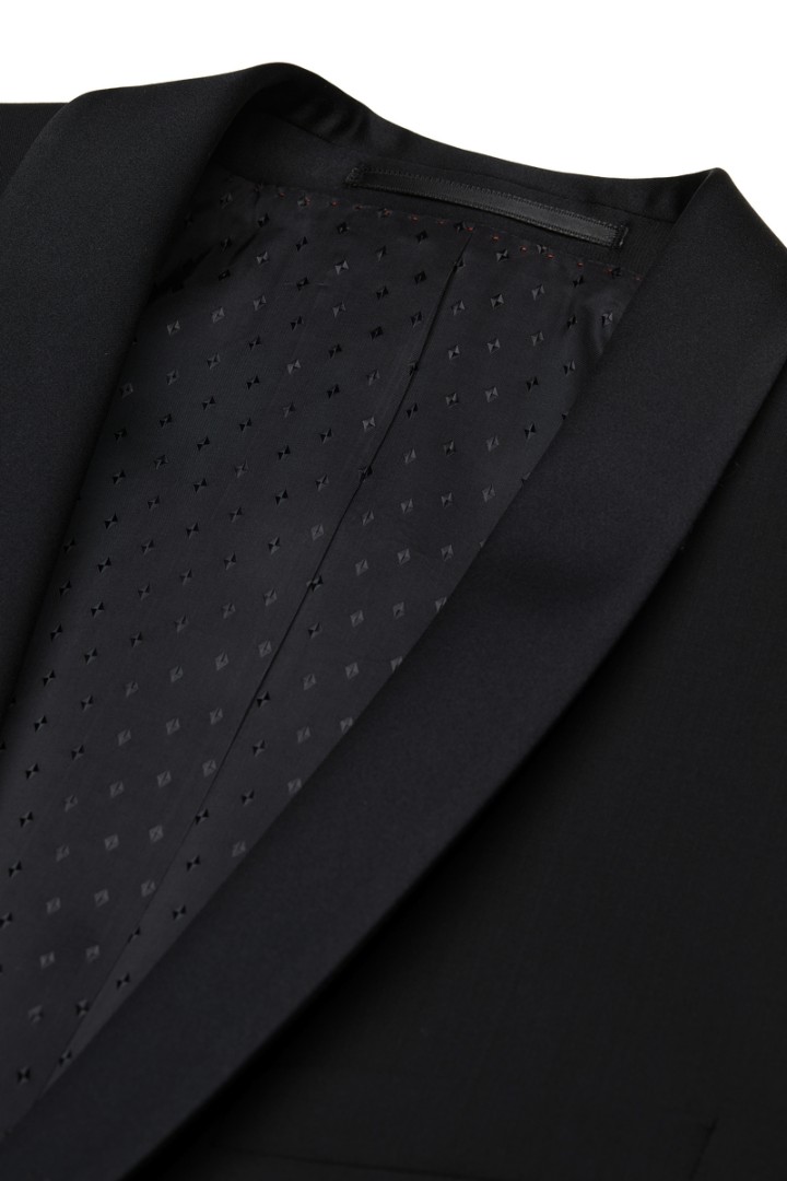 Höchste Qualität und Verarbeitung sowie viele interessante Details machen diesen SLIM FIT DIGEL Smoking Blazer zu etwas besonderem. In edlem schwarz und aus feinster italienischer Schurwolle sowie mit samtigem Revers - als 1 -Knopf Variante und mit Seitenschlitzen gefertigt wird dieser Blazer zu den ganz besonderen Anlässen getragen