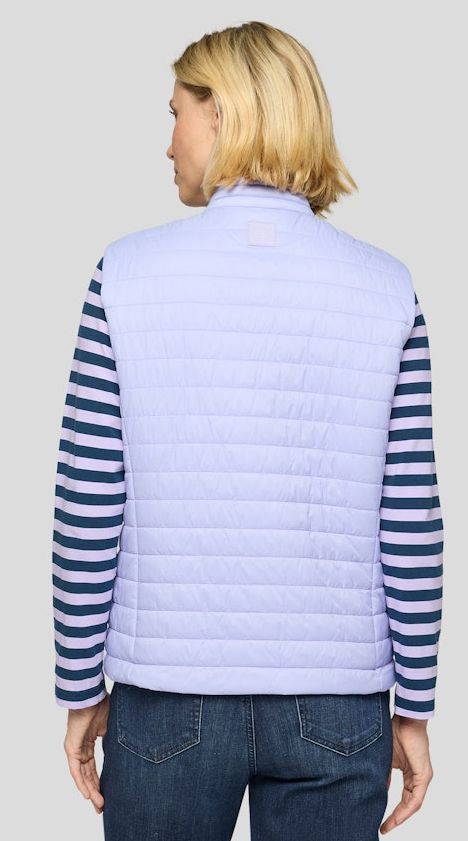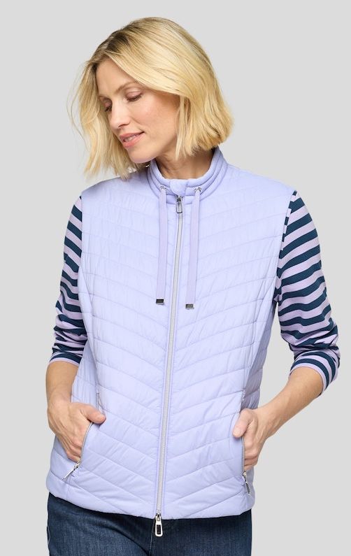Diese modisch sportive Steppweste in Flieder wurde mit R-V - Bändchen am Stehbund sowie zwei seitlichen Taschen designt und ist immer leicht zu kombinieren