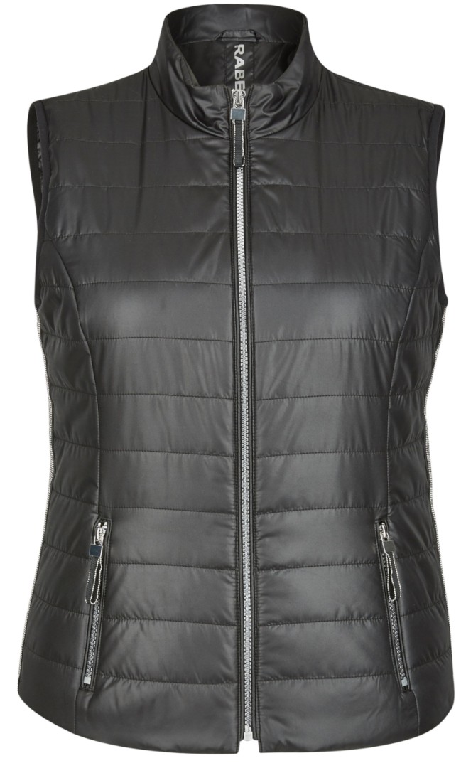 Die sportive Steppweste in uni schwarz lässt sich immer kombinieren und ist das ganze Jahr hindurch tragbar. Mit R-V sowie den seitlichen Ziernähten mit Strass gehört diese edle Weste zu den Highlights der Saisone