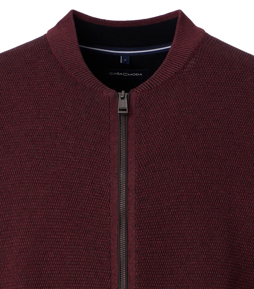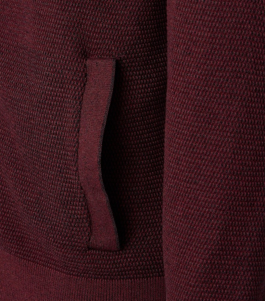 Diese sportive uns zugleich zeitlose Strickjacke wurde in beere mit feiner Struktur sowie R-V designt
