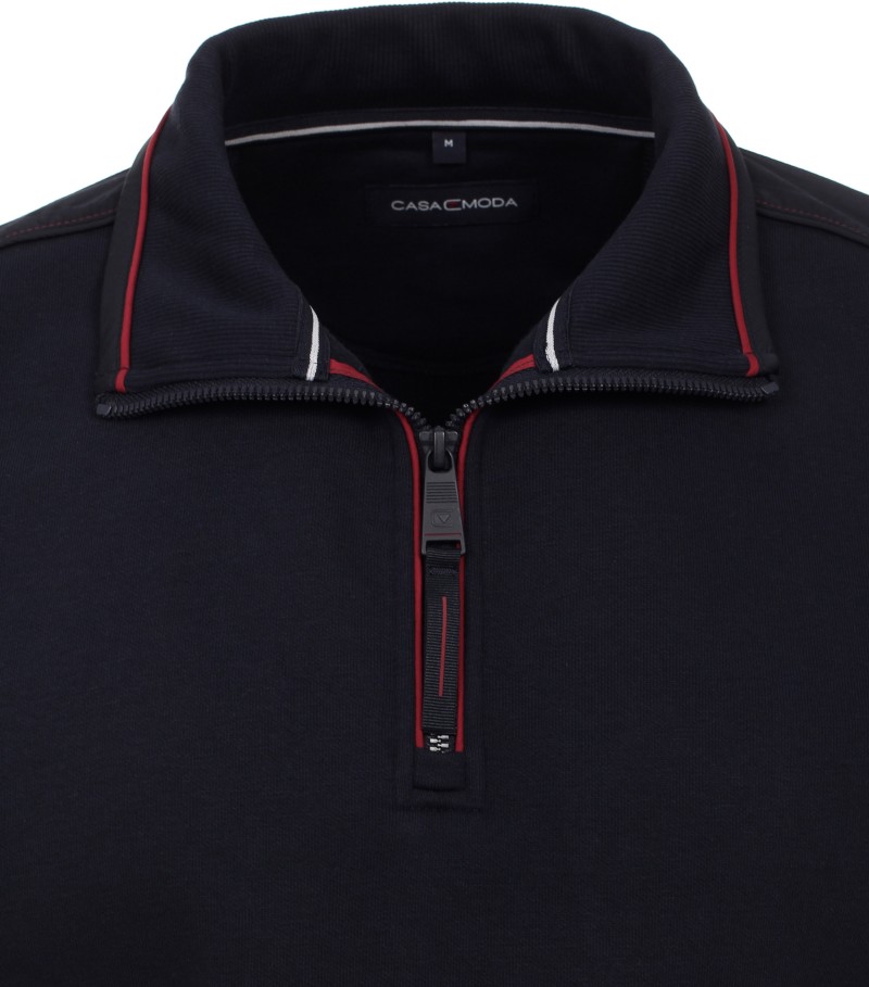 Dieses aktuelle Sweat Shirt wurde in marine-blau designt. In Troyer Form also mit Reißverschluss am Kragen ist dieses Sweat aus reiner Baumwolle vielseitig zu kombinieren und zudem pflegeleicht