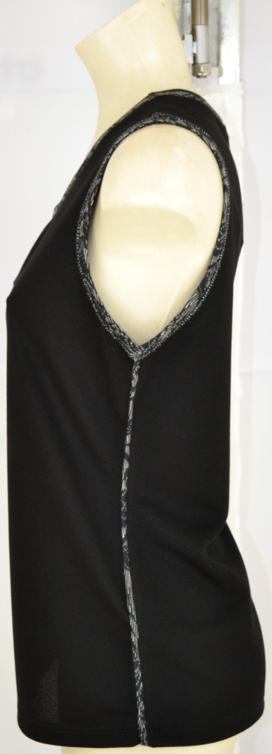 Dieses spottive Top wurde in uni schwarz mit Zienähten am runden Ausschnitt sowie seitlich designt und kann das ganze Jahr leicht kombiniert werden