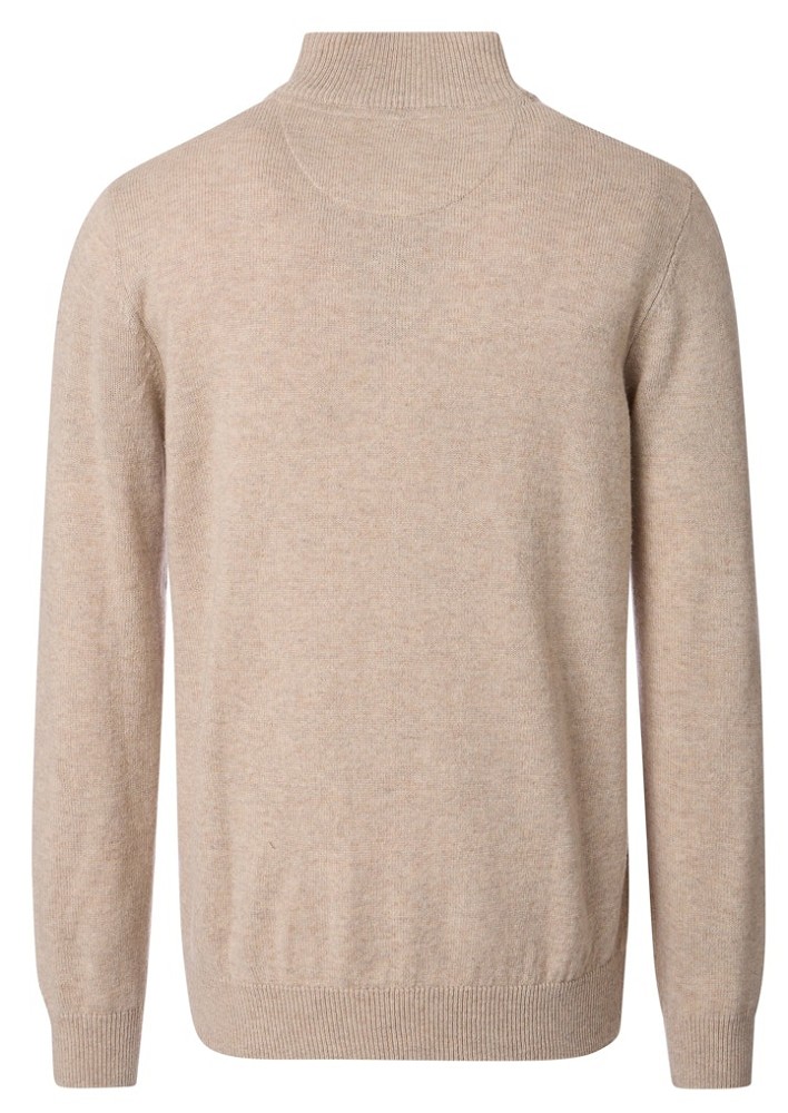 Der sportive Pullover wurde als Troyer designt. In beige mit R-V lässt sich dieser Pulli aus 80 % feinster Schurwolle prima kombinieren