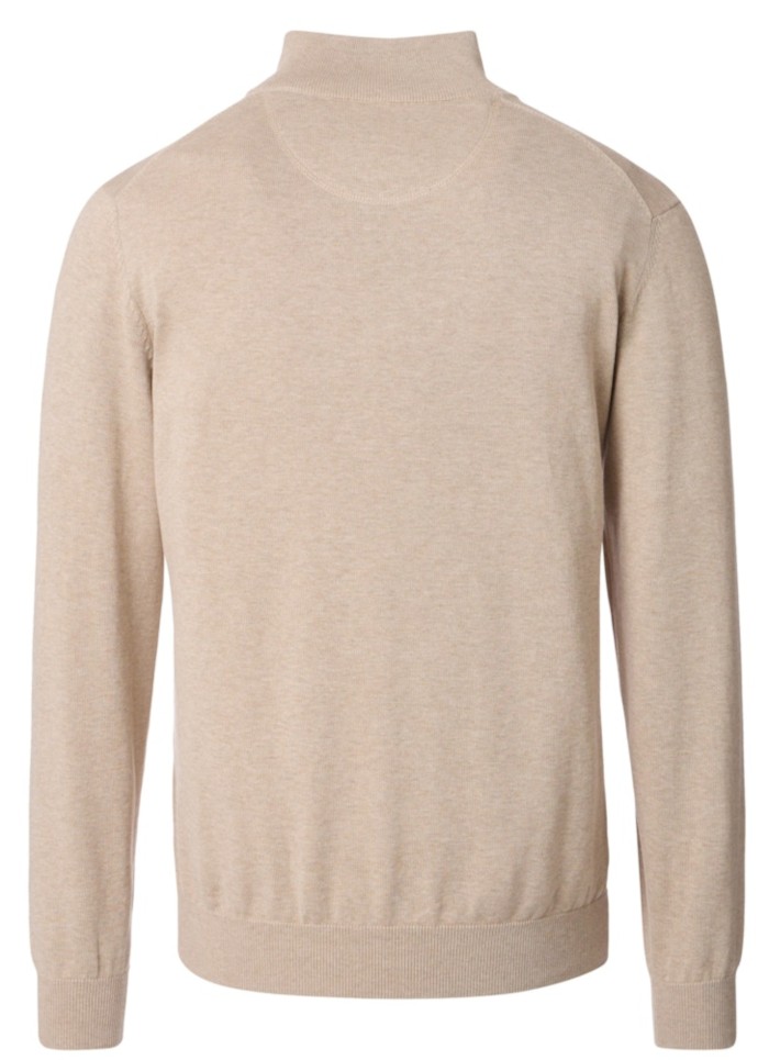 Der sportive Pullover wurde als Troyer designt. In beige mit R-V lässt sich dieser Pulli aus reiner Baumwolle das ganze Jahr hindurch prima kombinieren