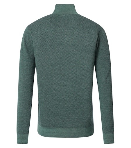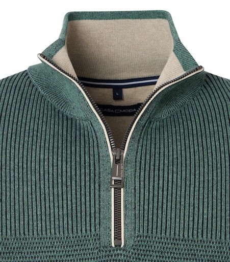 Der sportive Pullover wurde als Troyer designt. In grün-grau fein gerippt bis untern den R-V lässt sich dieser Pulli aus reiner Baumwolle das ganze Jahr hinduch prima kombinieren