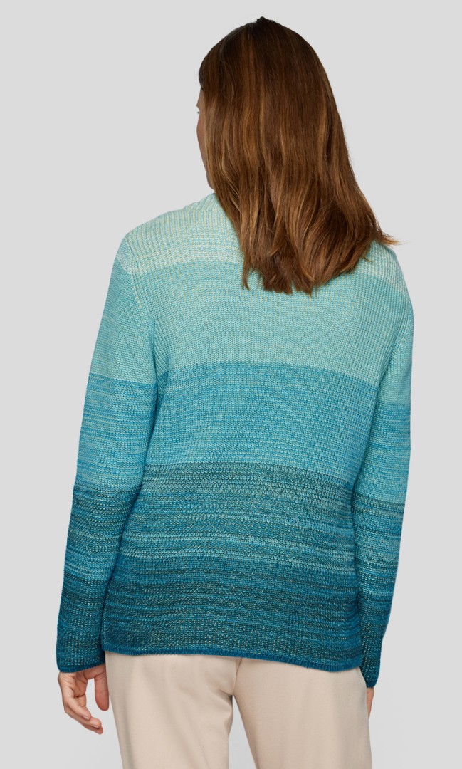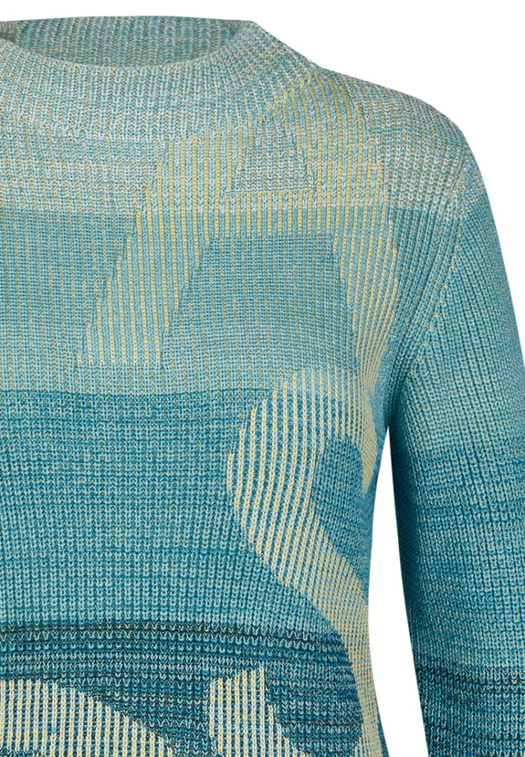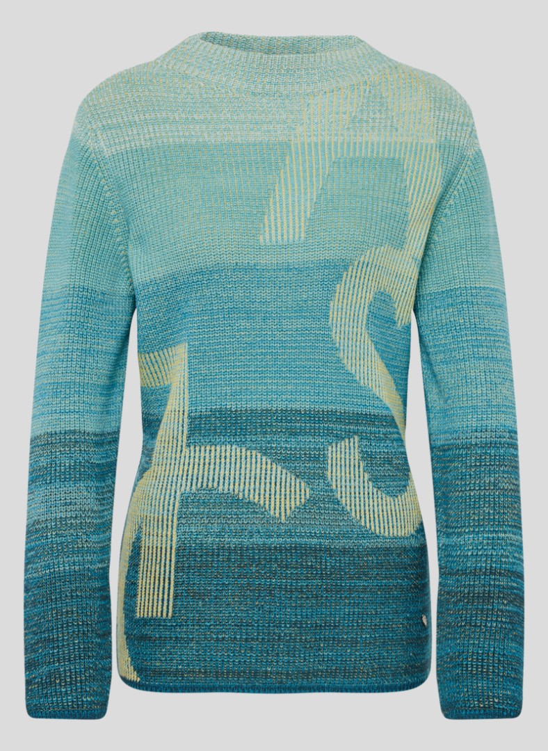 Der exquisite Pullover bietet ein angenehmes Tragegefühl und zeichnet sich durch den eleganten Stehkragen sowie die ansprechenden Blockstreifen in Blau-Grün Tönen aus. Auch die grafischen Print-Akzente machen dieses Pulli zu etwas besonderen