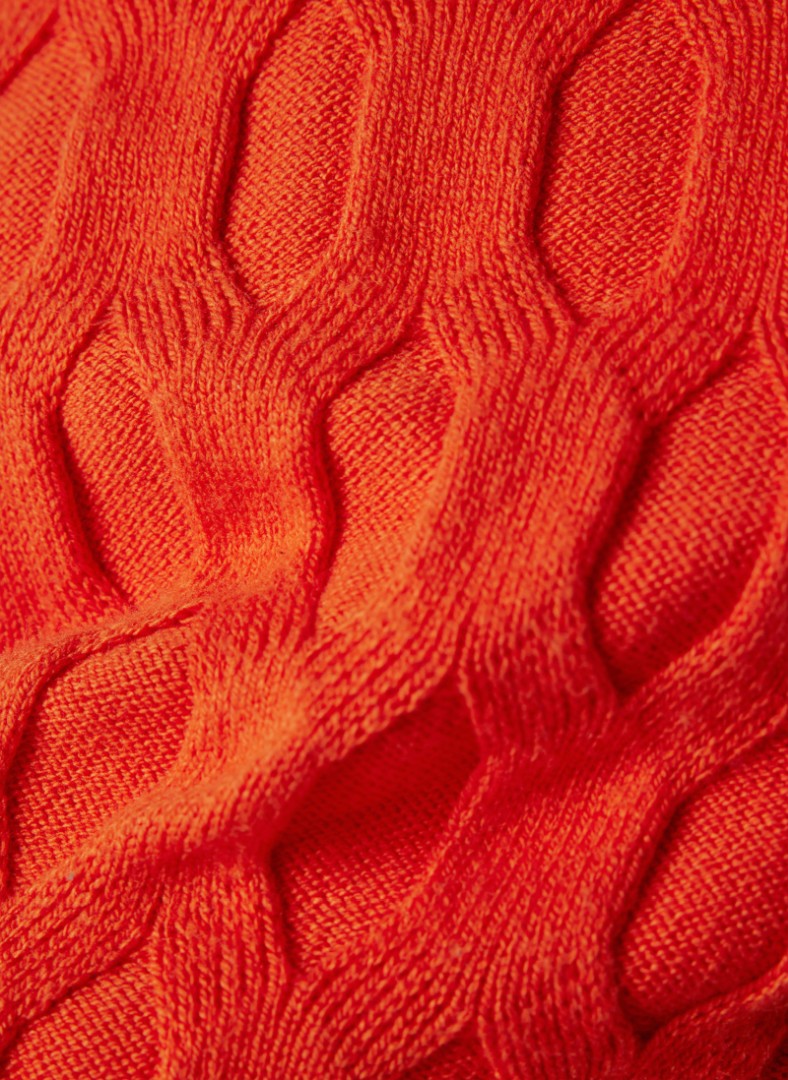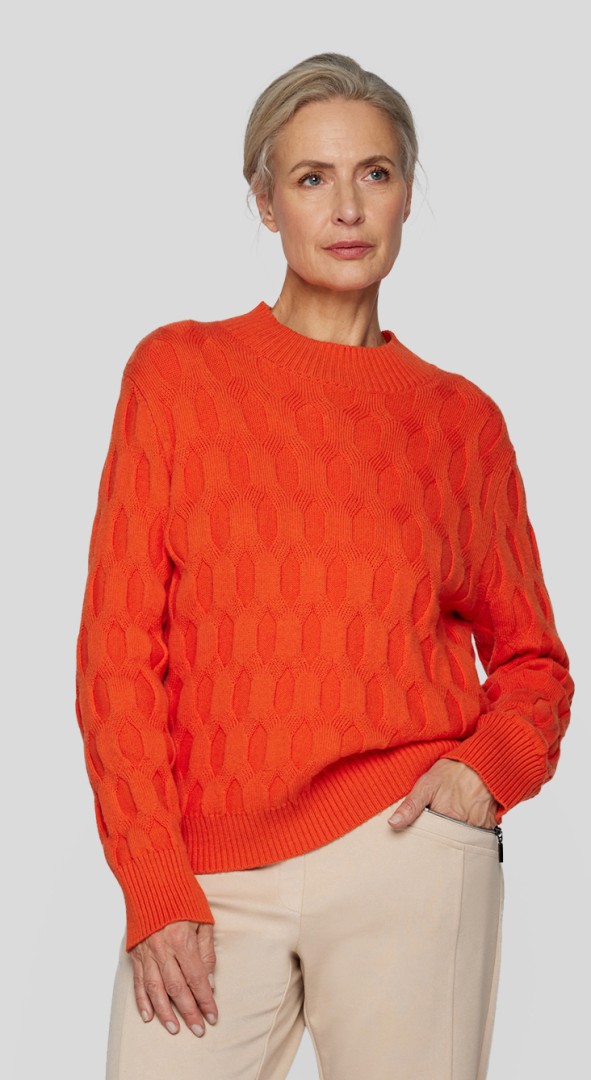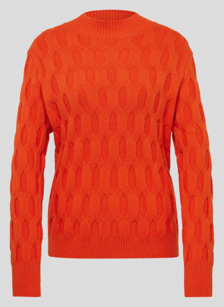 Mit diesem modischen Pulli setzen Sie ein stylisches Statement. Egal ob für den Alltag oder den besonderen Anlass, dieser Pullover mit Turtle Kragen und Zopfmustert verleiht in uni safran immer einen besonderen Farbakzent