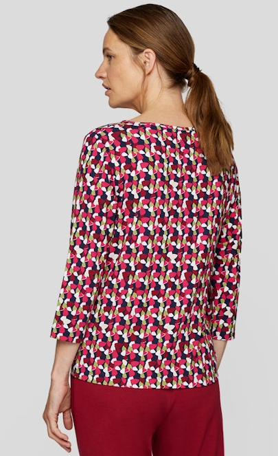 Das angenhnem zu tragende Shirt wurde mit rundem Ausschnitt und 3/4 Arm designt. Der grafische Allover-Print mit Granat-Rot bringt frischen Schwung in Ihre Herbstgarderobe